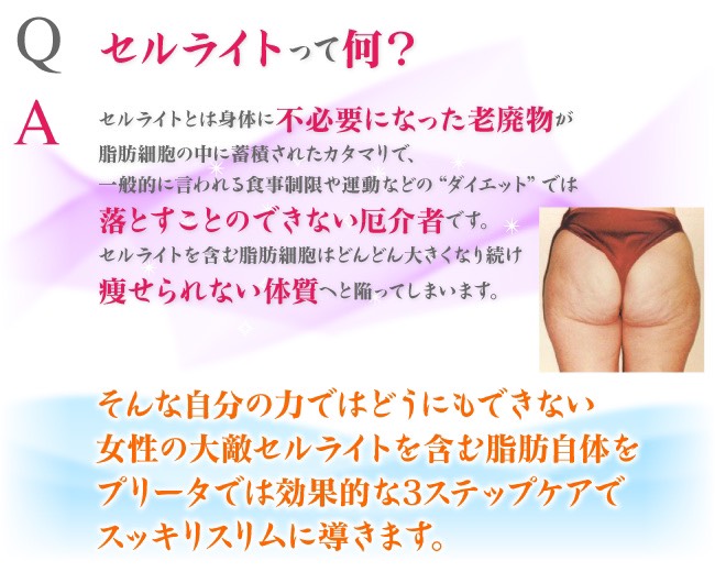 ちなみに、セルライトとは何かご存じでしょうか。運動や食事制限ではなかなか落ちません。